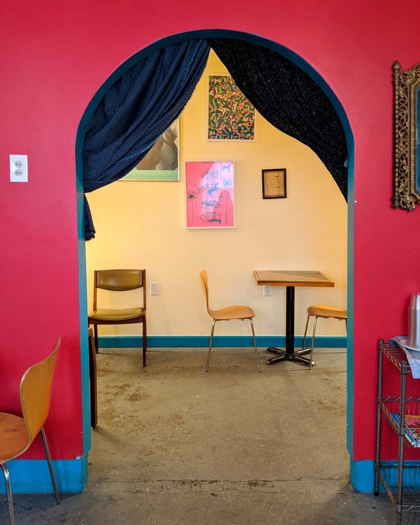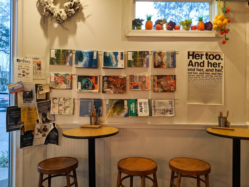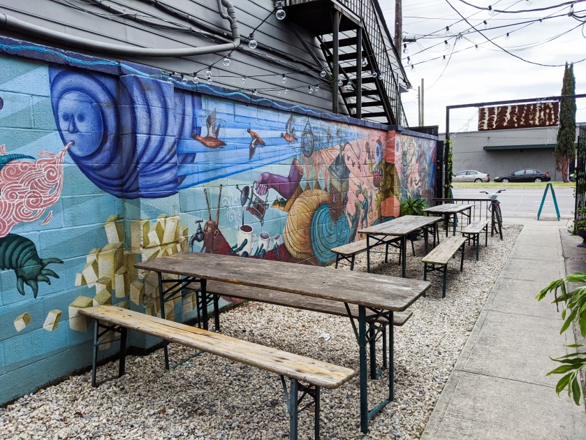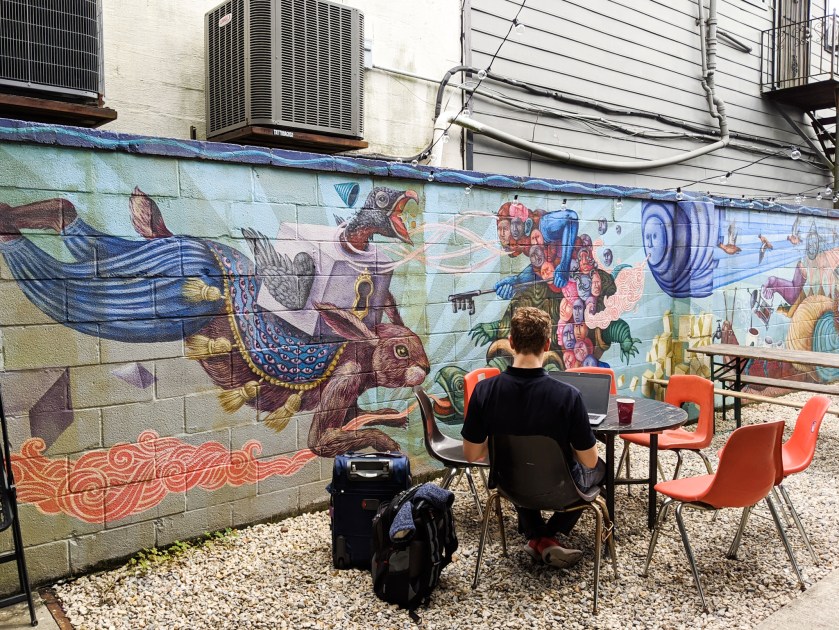 પછીનાં દિવસે મોડી બપોરે અમારી ફ્લાઇટ હતી અને મારે અને સૅમને બંનેને એ દિવસે કામ ચાલુ હતું. રાત્રે બધો સામાન પૅક કરીને સવારે નાહીને તરત ચેક-આઉટ કરવાનું રહે તેવો અમારો પ્લાન હતો. કામ કરવા માટે અમારે વાઇ-ફાઇવાળું કોઈ કૅફે શોધવાનું હતું. મારે કશેક આસપાસ જ રહેવું હતું જેથી આવવા-જવામાં સમય ઓછો વેડફાય. પણ, સૅમનો પ્લાન કૈંક બીજો હતો. તેણે તો ઊબર ઓર્ડર કરી! પહેલા તો મને થયું આ કેમ આવા કામ કરે છે?! પણ, કૅફે પહોંચ્યા ત્યારે સમજાયું કે, તેનો ગ્રાન્ડ પ્લાન એ હતો કે, આગલા દિવસે આર્ટ-વૉક દરમિયાન મારાં ધ્યાનમાં એક આઉટડોર સીટિંગવાળું એક કૅફે આવ્યું હતું જેની દીવાલો પર મ્યુરલ્સ જ મ્યુરલ્સ બનેલા હતાં! પણ, તે અમારી ટૂઅરનાં એજન્ડામાં એ નહોતું એટલે અમે ત્યાં રોકાઈ નહોતા શક્યા. સૅમ અને હું ફરી ત્યાં આવી પહોંચ્યા હતા! ત્યાં બેસીને કામ કરવાનાં વિચારે જ મને ખુશ કરી દીધી.