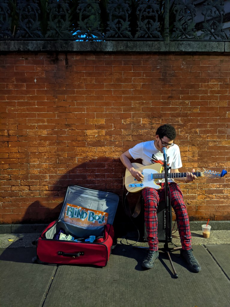 રસ્તામાં અમને નાના બાળકોથી માંડીને દરેક ઉંમરનાં સ્ટ્રીટ મ્યુઝિશિયન જોવા મળ્યા! ઘણી બધી શેરીઓનાં ખૂણે ખાંચરે અમને કોઈને કોઈ મ્યુઝિક વગાડતું દેખાઈ જતું. તેમનાં વીડિયોઝ હું લઈ શકી હોત. પણ, એ સમયે ફોનનાં કૅમેરામાંથી એ બધું જોવા-સાંભળવા કરતા મને એ ઘડીમાં ત્યાં હાજર રહીને તેમનું સંગીત માણવાનું વધુ યોગ્ય લાગ્યું એટલે વીડિયોઝને મારી ગોળી અને યાદ માટે અને આ બ્લૉગ પર શેર કરવા માટે તેમનાં થોડાં સ્ટિલ ફોટોગ્રાફ્સ લઈને સંતોષ માન્યો.