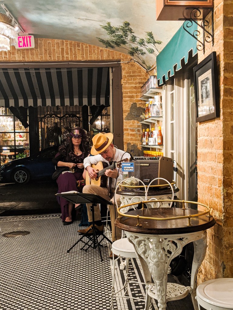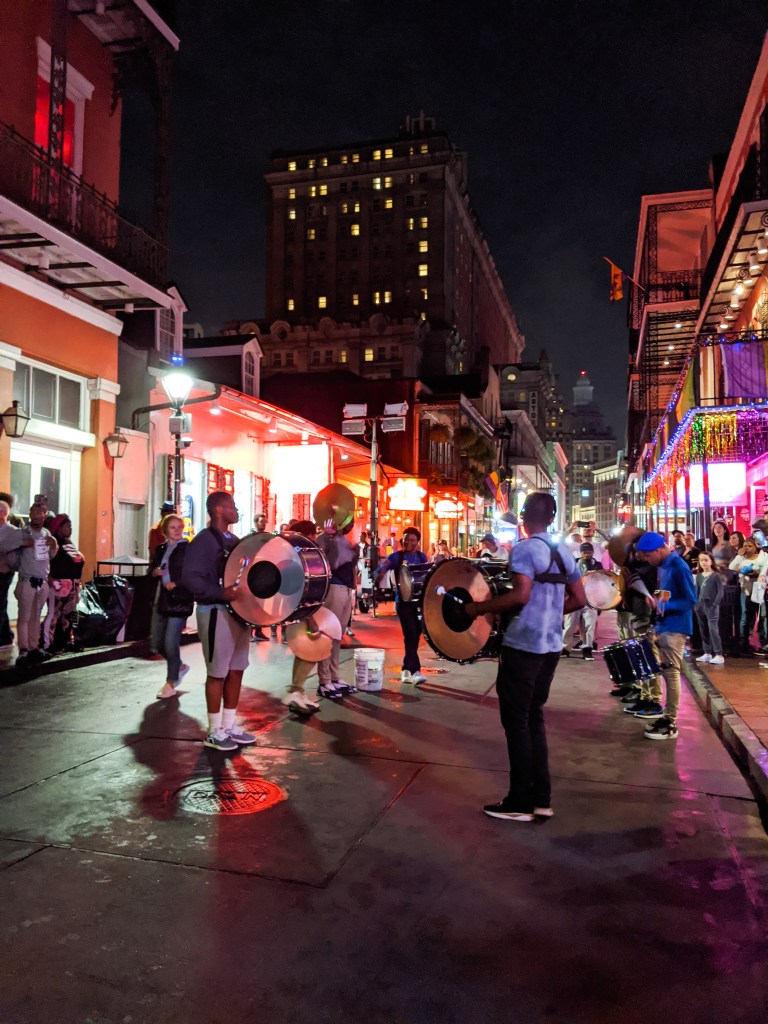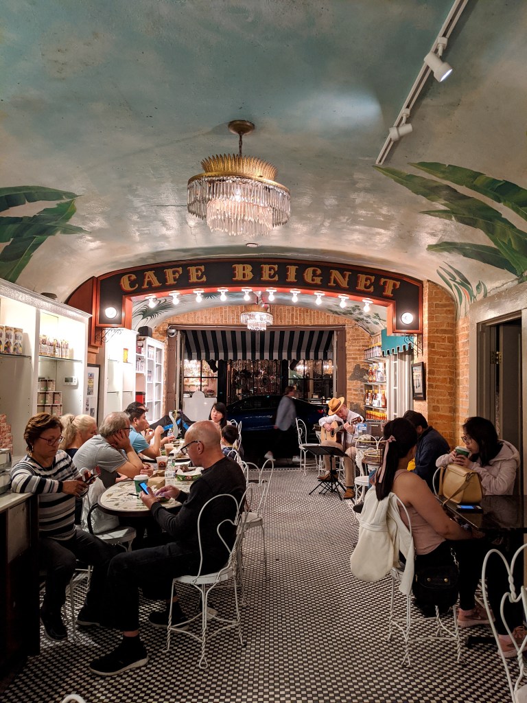 કોઈ ખાસ એજન્ડા તો હતો નહીં એટલે ઈચ્છા પડે તે દિશામાં ફરતા રહ્યા. આટલું કરતા ભૂખ લાગી એટલે એક નાનકડાં ક્યૂટ કૅફેમાં જઈને અમે ન્યુ ઓર્લીન્સની પ્રખ્યાત બેકરી આઇટમ – ‘બૅન્યે’ (Beignet) ની મજા માણી અને લાઇવ મ્યુઝિક તો ત્યાં પણ ચાલુ જ હતું. ત્યારે થયું કે, ‘મિડનાઇટ ઈન પૅરિસ’ની જેમ ‘મિડનાઇટ ઇન ન્યુ ઓર્લીન્સ’ પણ બનવું જોઈએ, આ શહેર તેટલું ચાર્મિંગ છે!