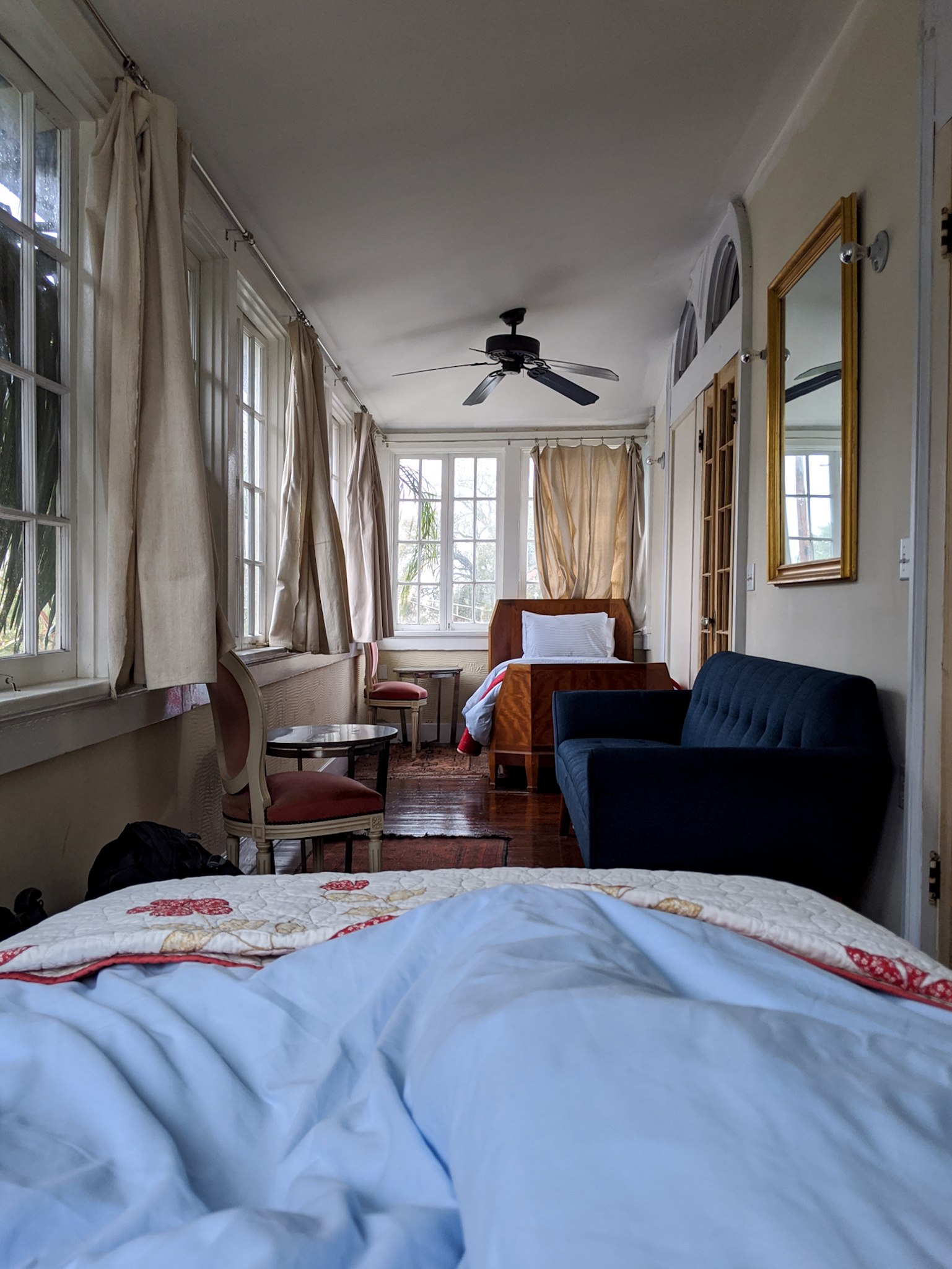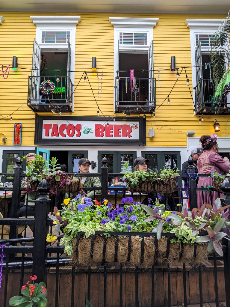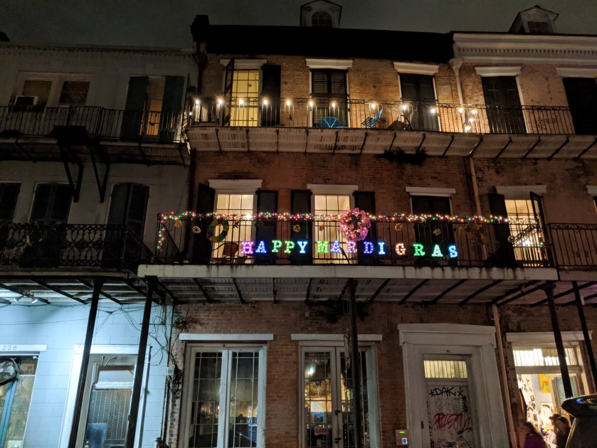 અમે લૅન્ડ થતાવેંત જોયું કે, પાર્થની નવી ફલાઇટ બરાબર સમયસર લૅન્ડ થઇ ગઈ હતી અને તેની સાથે તેનો સામાન પણ આવી જ ગયો હતો! એ પોતાનો સામાન લઈને બહાર આવ્યો તેની પાંચ-દસ મિનિટમાં જ અમે લૅન્ડ થઇ ગયા હતા એટલે તેને બહુ રાહ પણ ન જોવી પડી. ત્યાંથી ટૅક્સી પકડીને અમે પહોંચ્યા ફ્રેન્ચ કવાર્ટર જ્યાં અમારું એરબીએનબી આવેલું હતું. ઍરપોર્ટથી નીકળીને પહેલી વીસેક મિનિટનો રસ્તો તો બિલકુલ સામાન્ય, અન્ય શહેરો જેવો જ હતો. પણ, અમારાં એરબીએનબી નજીક પહોંચતા છેલ્લી પાંચ મિનિટ અમે આંખો ફાડીને કારમાંથી જોતા રહ્યા. રાત પડી ગઈ હતી અને ઓછી રોશની હતી છતાં ત્યાંનાં ઘર તથા દુકાનો એવાં દેખાતાં હતાં કે, જાણે અમે કોઈ અલગ જ સમયમાં પહોંચી ગયા હોઈએ! બાર અને રેસ્ટ્રોંમાં અંદર તથા બહાર યુવાન લોકોની ભીડ પણ સારી એવી દેખાતી હતી. એ માણતા અમે પહોંચ્યા અમારાં એરબીએનબી.