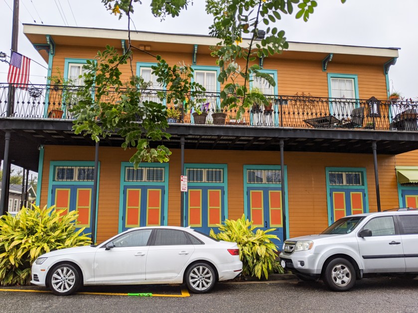 તૈયાર થઈને ફરવા નીકળતા પહેલા અમારે કૈંક ખાવું હતું. સૅમે પહેલેથી કૅફે અને રેસ્ટ્રોંનું લાબું લિસ્ટ બનાવી લીધેલું હતું એટલે તેમાંથી જ એક જગ્યા પસંદ કરવામાં આવી. અમારા ઍરબીએનબીથી ચાલીને દસેક મિનિટનાં અંતરે એક કૅફે હતું ત્યાં સુધી અમે ચાલી ગયા અને પહોંચ્યા ન્યુ ઓર્લીન્સનાં પ્રખ્યાત ‘મૅરિની’ વિસ્તારમાં. એ કૅફૅ સૅમે શોધ્યું હતું એટલે પોતાનું મગજ ચલાવ્યા વગર એ જ્યાં જાય એ તરફ હું અને પાર્થ ફક્ત તેને ફોલો કરી રહ્યા હતા. એ ચક્કરમાં એ કૅફેનું નામ પણ હવે મને યાદ નથી અને તેનાં લોકેશનની ગૂગલ પર પિન પણ નથી. એ વિસ્તારની સુંદરતા હતી અપરંપાર! ત્યાં એટલાં સુંદર જૂની ઢબનાં રંગબેરંગી ઘર હતા કે, ન પૂછો વાત! થોડી વાર તો એમ જ લાગે કે, જાણે હું પિક્સાર સ્ટૂડિયોઝનાં સેટ પર આવી ગઈ હોઉં. અમે પહોંચ્યા ત્યારે એ ધમધમતું હતું અને લોકો લાંબી લાઇન લગાવીને ઊભા હતા. પણ, હવે ત્યાં પહોંચી જ ગયા હતા અને લાઇન ઝડપથી આગળ વધતી દેખાઈ એટલે ત્યાં રાહ જ જોઈ લેવાનું નક્કી કર્યું. ત્યાં રાહ જોવાય તેટલાં સમયમાં મેં તેની સુંદરતા કૅમૅરામાં કેદ કરવાનું કામ કર્યું.