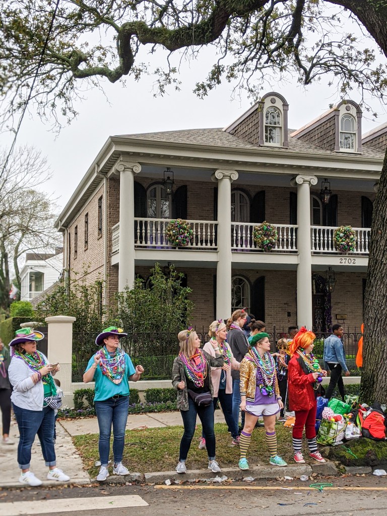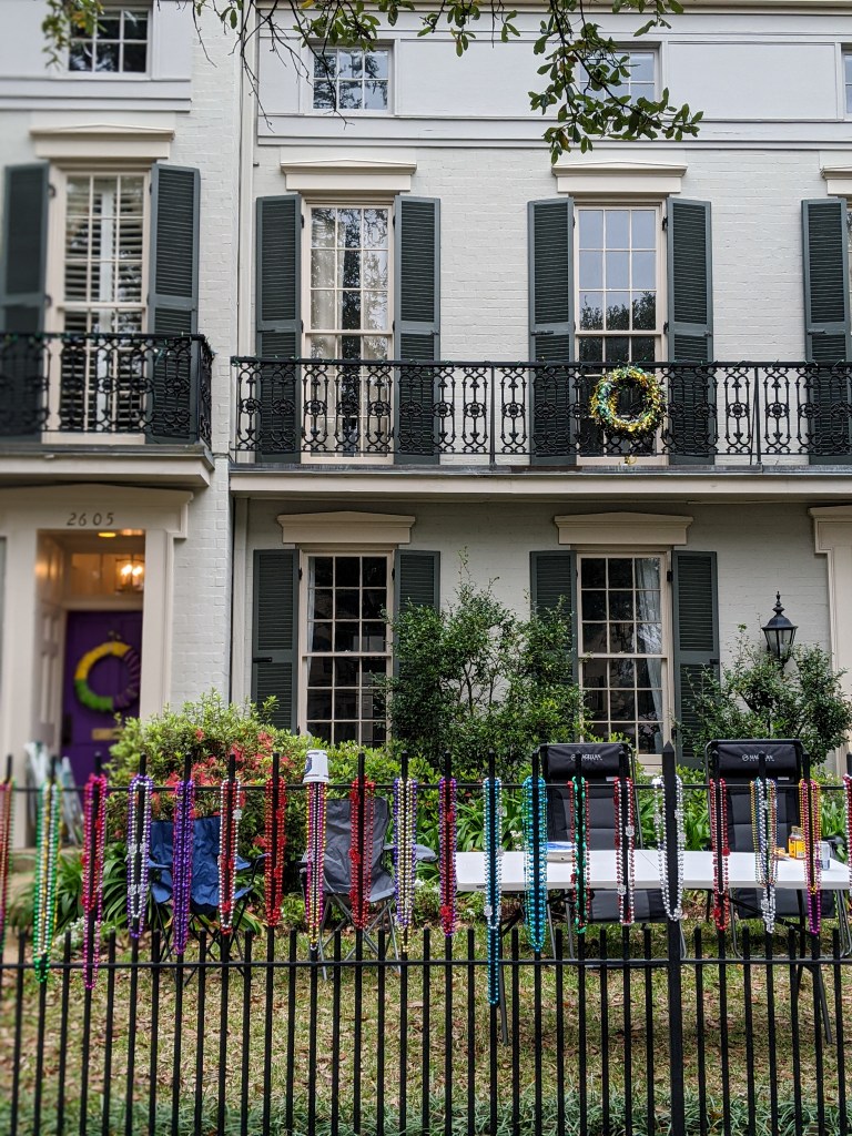 ત્યાં આખી બપોર પસાર કરીને સ્વાભાવિક રીતે જ અમે થાકી ગયા હતા અને પાછા ફરવા વિષે વિચારવા લાગ્યા. એ થાક અમે પરેડ જોવા આવેલા બાળકોની આંખમાં પણ જોયો. ટ્રકમાંથી વસ્તુઓ ફેંકાતી બંધ થઇ ગઈ હતી. પરેડની શરૂઆતમાં ભેગાં કરેલાં બીડ્સનાં હાર હવે એ લોકો પરેડનાં ટ્રકમાં પાછા ફેંકી રહ્યા હતા! એ સિવાય વૃક્ષો પર, ઉપરનાં ફોટોમાં છે તેમ ઘરની રેલિંગ પર, એ આખા રસ્તામાં ઠેર-ઠેર બીડ્સનાં હાર લટકતાં જોવા મળતાં હતાં!