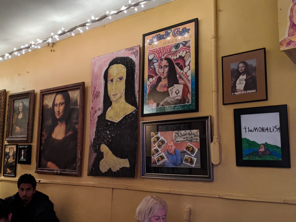 મોનાલીસાનું ડેકોર ખૂબ રમૂજી અને કલાત્મક હતું. આખા રેસ્ટ્રોંમાં બધી જ દીવાલો પર દા વિન્ચીનાં પ્રખ્યાત – ‘મોનાલીસા’ પેઇન્ટિંગનાં અનેક વેરિયેશન લગાવવામાં આવ્યા હતા. નીચે જુઓ તેમાંની બે દીવાલોનો ફોટો.