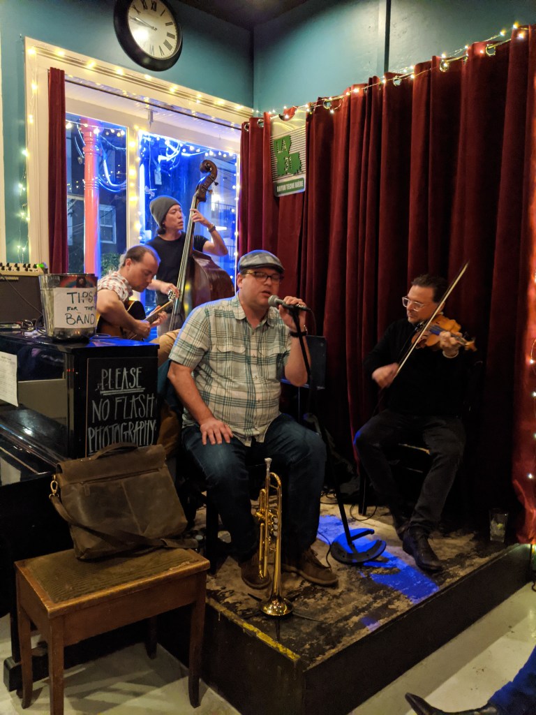 અમે પહોંચ્યા ત્યારે ત્યાં થોડી ભીડ હતી અને ત્રણ લોકોનું એક બૅન્ડ પોતાનું ઓરિજિનલ મ્યુઝિક વગાડી રહ્યું હતું. એ બહાર પણ થોડું થોડું સંભળાતું હતું એટલે બહારથી જ અમને લાગ્યું હતું કે, અહીં મજા આવવી જોઈએ. એ જગ્યા બહુ નાની હતી અને ત્યાં દીવાલની ધારે થોડી થોડી જ બેઠકો હતી જે, બધી લેવાઈ ચૂકી હતી. નેવું ટકા લોકો ઊભા રહીને જ સંગીતની મજા માણી રહ્યા હતા. અમે મોટા ભાગની ભીડ કરતા વહેલા પહોંચી ગયા હતા એટલે બૅન્ડનાં સ્ટેજ પાસે આગળ ઊભા રહી શક્યા. ત્યાં અમે લગભગ દોઢથી બે કલાક ગાળી. તેમનું મ્યુઝિક ખૂબ સારું હતું અને તેમાંયે ખાસ તેમની વોકલિસ્ટે જમાવટ કરી હતી. તેનું ગાયન તો અદ્ભુત હતું જ, એ ગીત લખ્યા પણ તેણે પોતે જ હતાં અને એક ‘સ્ટાર’માં હોવો જોઈએ તેટલો કૅરીઝ્મા (charisma) પણ તેનામાં હતો એટલે એ આરામથી કલાકો સુધી ઑડિયન્સને જકડી રાખવા સક્ષમ હતી. તેનાં અકંપનીઇસ્ટ પણ, ખૂબ સારા હતા જેમાં, એક હતો ગિટારિસ્ટ અને એક સાક્સોફોન પ્લેયર. સાક્સોફોન પ્લેયરે બે-ત્રણ વખત વચ્ચે સોલો વગાડ્યું ત્યારે એ પણ છવાઈ ગયો હતો. અમે નસીબદાર હતા કે, બરાબર એવાં સમયે પહોંચ્યા હતા જયારે અમને ત્યાં આગળ ઊભા રહેવા મળ્યું. અમે ત્યાંથી નીકળ્યા ત્યારે ત્યાં ઊભા પણ રહેવાની જગ્યા નહોતી રહી એટલી ભીડ ત્યાં એકઠી થઈ ગઈ હતી.