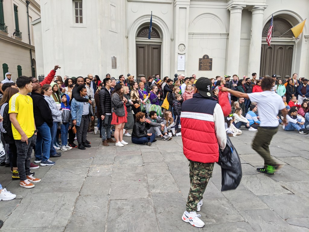 ખાસ કૈં હતું નહીં. કોઈ કલાકાર થોડાં સામાન્ય કરતબ દેખાડી રહ્યો હતો એટલે અમે ત્યાંથી નીકળી ગયા અને આસપાસની દુકાનોમાં ફર્યા. એ દિવસે બીજો કોઈ પ્લાન નહોતો, ફક્ત ન્યુ ઓર્લીન્સની નાઈટલાઈફ માણવી હતી. પણ, હજુ અંધારું નહોતું થયું એટલે નાઇટલાઇફ માટે થોડું વહેલું હતું અને કોઈને ઘરે જવાનું મન નહોતું એટલે ત્યાં કથીડ્રલ આસપાસ જ અમે થોડા આંટા માર્યા.