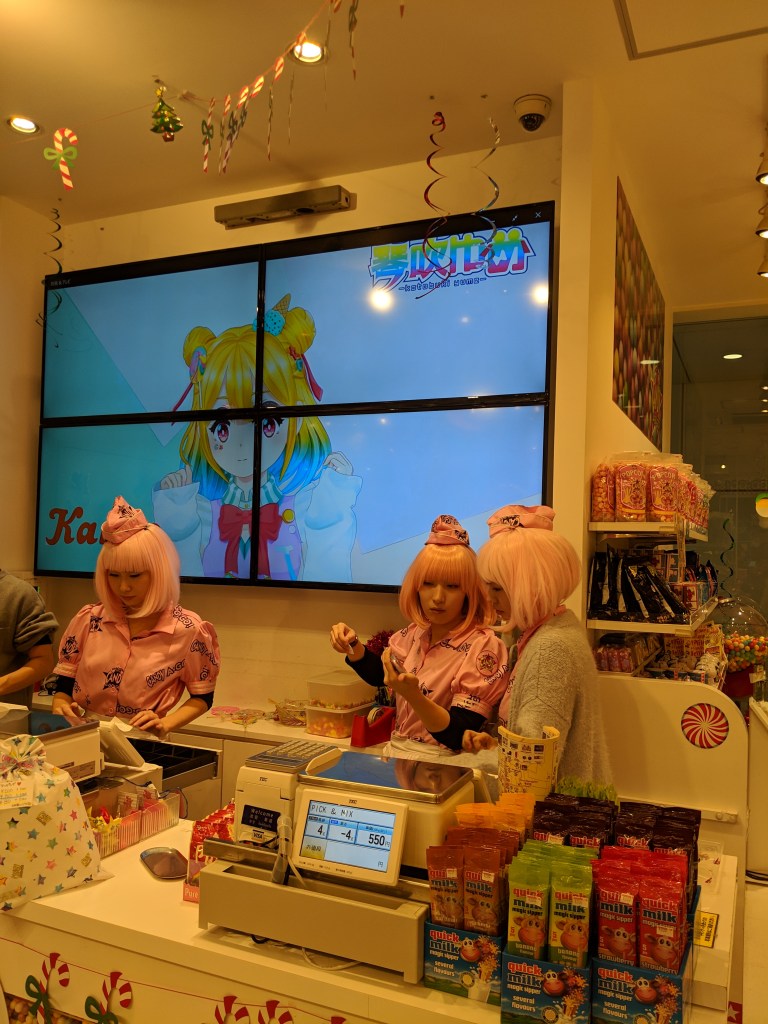 એ શેરીમાં અમને ઢીંગલી જેવાં વસ્ત્રોમાં સજ્જ ઘણી છોકરીઓ દેખાઈ. શ્રીએ જણાવ્યું ત્યાં ઘણી છોકરીઓ ઢીંગલીની જેમ જ જીવે છે. એ લોકો ઢીંગલી જેવાં કપડાં પહેરે, ઘણાં તો પોતાનાં રૂમને પણ રમકડાંનાં ઘરની જેમ સજાવે અને તેમનાં પરિવારોએ તેમની આ જીવનશૈલી સ્વીકારી પણ લીધેલી છે! ત્યાં કૅન્ડી સ્ટોર અને આઈસક્રીમ શોપ્સનાં સ્ટાફમાં પણ અમે રંગબેરંગી ક્યૂટ કોસ્ચ્યૂમ જેવાં કપડાંમાં ઘણી છોકરીઓ ફરતી દેખાઈ. એ શેરીમાંથી અમે ક્યૂટ પ્રાણીઓની પ્રિન્ટવાળાં મોજા અને એક રમૂજી ટી-શર્ટ લીધું. અડધી પોણી કલાકમાં તો ત્યાંનાં કલર-કલર અને લાઇટ્સથી મગજ અને આંખો થાકી ગયા અને અમે આગળ ચાલ્યા.