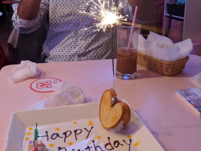 કાફૅનાં મેન્યુમાં ખાવા પીવાનું ઓર્ડર કરવા માટે અલગ અલગ પેકૅજ હતાં. એ પૅકેજમાં તમને શું ખવડાવવા કે પીવડાવવામાં આવશે એ સિવાય એ લોકો તમારો ઓર્ડર કઈ રીતે લાવશે, તમારી સાથે કે તમારા માટે કઈ કઈ આનંદી પ્રવૃત્તિઓ કરશે એ બધું જ આવી જાય! એક ચોક્કસ પૅકેજ ખરીદ્યા સિવાય તમે એ લોકોનાં કે કાફૅની અંદરની કોઈ પણ વસ્તુનાં ફોટો ન લઇ શકો. અમારી આસપાસનાં ટેબલ પર બેઠેલા લોકોમાંથી કોઈએ લીધેલાં એક પૅકેજને કારણે એ સમયે ત્યાં બેઠેલા અમને બધાને વેટ્રેસિસનો એક ડાન્સ પણ જોવા મળ્યો. એ ડાન્સ એટલો બધો એનર્જીવાળો કે જેની કોઈ હદ જ નથી અને છતાંયે તેમાં તમને કોઈ વધુ કળાનો ઉપયોગ થયો હોય તેવું ન લાગે, યંત્રવત લાગે. એટલું જ નહીં, ત્યાં બેઠેલા લોકોમાં વારંવાર આવનારા કોઈ જણને પેલી છોકરીનાં ડાન્સની આખી કોરિયોગ્રાફી યાદ હતી. એ સ્ટેજ પર જે કરી રહી હતી એ દરેક ડાન્સ મૂવ આ ભાઈ જમીન પર કરી રહ્યા હતા. અમે લોકો હસીને હસીને ગાંડા થઇ ગયા. થોડી વારે અમારું ખાવા-પીવાનું આવ્યું. ખાવા-પીવામાં ત્યાં નાશ્તા, મિલ્કશેક્સ વગેરે જંક ફૂડ સિવાય ખાસ કૈં હતું નહીં અને એ પણ કૈં એટલું સારું નહીં. અમે સૅમને ચીડવવા માટે તેમને જણાવ્યું કે, અઠવાડિયા પહેલા તેનો બર્થ ડે હતો. એટલે અમારી ઑલરેડી અતિ ઉત્સાહિત વેઇટ્રેસ ઓર જોમમાં આવી ગઈ અને તેનાં માટે એક થાળીમાં ચૉકલેટ સૉસથી હૅપી બર્થ ડે લખીને તેનાં પર મિણબત્તી અને ફુલઝર મૂકીને લાવી.