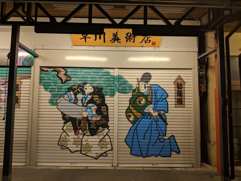 દસેક મિનિટ ત્યાં ફરીને અમે નક્કી કર્યું પાસેનાં ‘દોન-કિયોતે’ જવાનું. ત્યાં જતા રસ્તામાં અમે દુકાનોનું આ નવું સ્વરૂપ જોયું જેમાં, દુકાનોનાં શટર પાર સુંદર રંગોથી પેન્ટિંગ્સ કરેલાં હતાં. આવાં પેઇન્ટ કરેલાં શટરથી આખી શેરી ભરાયેલી હતી!